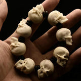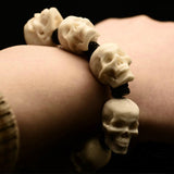 ☠ 8 pieces of handcrafted deer antler sculpture realistic white skull bracelet, the ultimate badass accessory for the kick-ass devils. Made of naturally-shed deer antler from an ethically farmed source, polished to resemble the skull texture, hand carved to the finest realistic details.