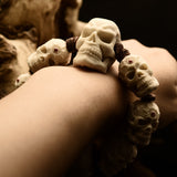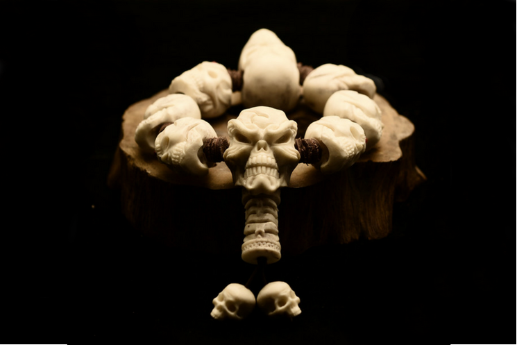 ☠ 8 pieces of handcrafted deer antler sculpture skull bracelet, the ultimate badass accessory for the kick-ass devils. Made of naturally-shed deer antler from an ethically farmed source, polished to resemble the skull texture, hand carved to the finest realistic details.