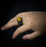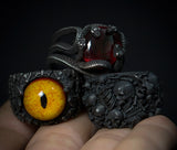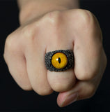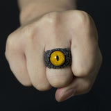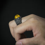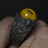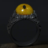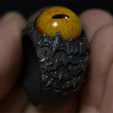 This majestic and mysterious Bats of Evil Eye Ring is truly breathtaking and captivating.Flock of black bats circulating the evil eye centerpiece set the scene for a soul-stirring happening. The center piece yellow evil eye seals the ancient magic power waiting for its master to unleash the drama.