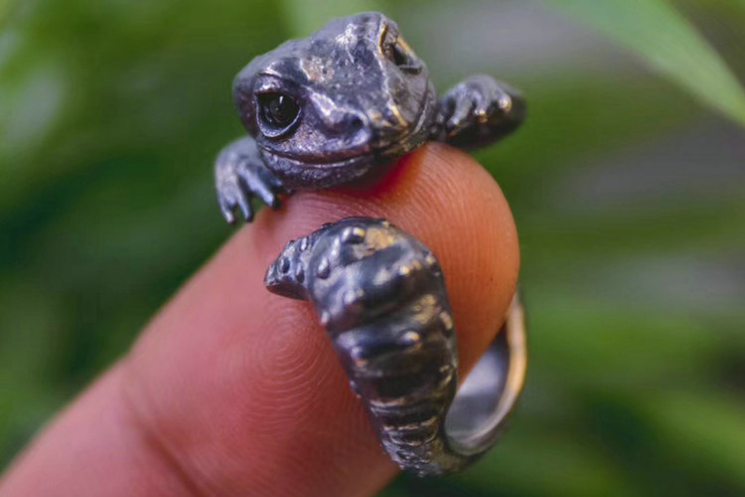 🦎 Blue Eyed Smiling Baby Gecko Ring 🦎