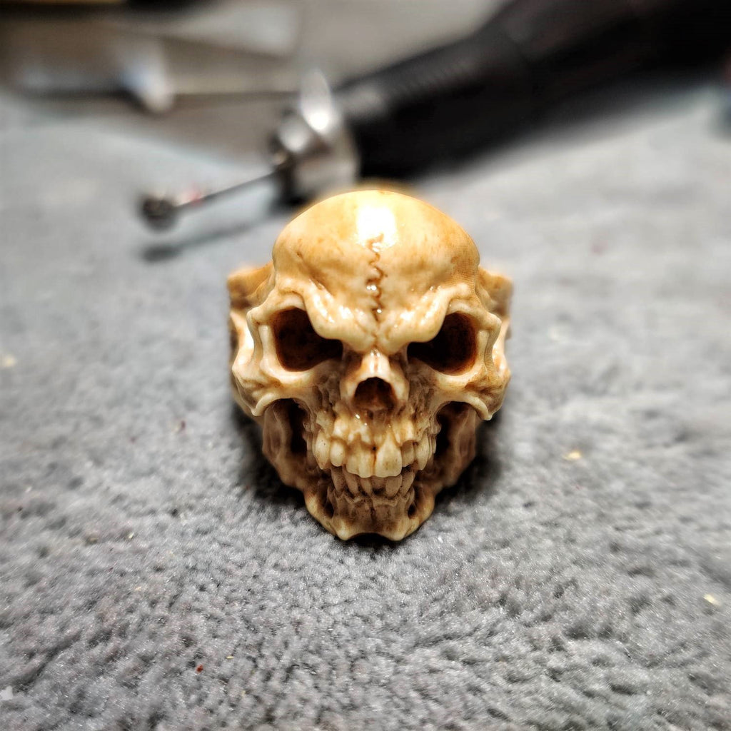 ☠☠☠ Deer Antler Demon Skull Ring ☠☠☠