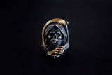 ☠ This Handcrafted Grim Reaper Ring of Death is made for the dark souls. Intricately handcrafted to capture the hellish soul of the Death, with high contrasting golden overlay brass embellishment, this Grim Reaper Ring is a true personal statement piece that will last beyond Death.