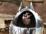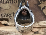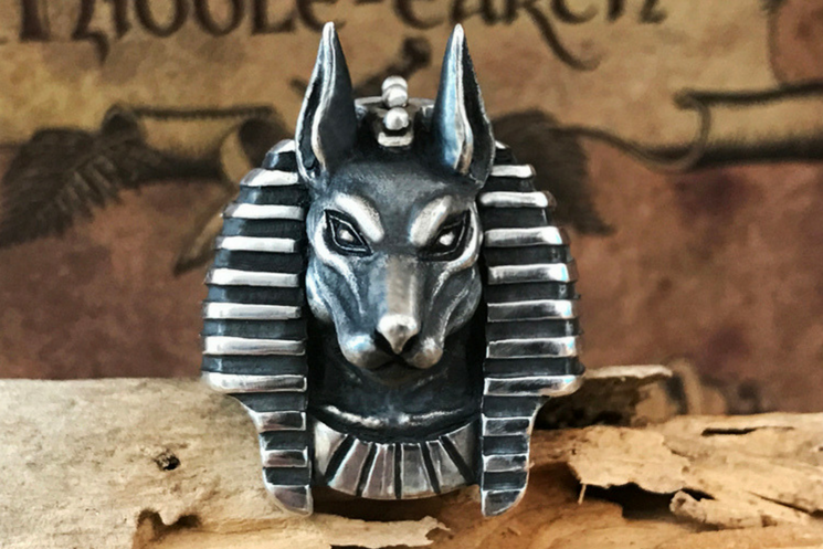 ☠ Like the God of Death with tremendous spiritual and physical power, this awesome Egyptian God Anubis silver ring is for the Badass Rulers . Handcrafted to the devil's details, the sharp horn, the ancient facial markings, and the hidden brass heart all make this ring a hell of deviliciousness.