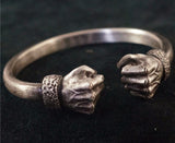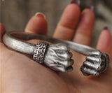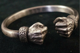 👊 This bracelet is the ultimate macho statement, the double power fists are made to express your strength, power and resilience. Unmistakably masculine, painstakingly handcrafted to the finest little details, heavy and thick to hold, pure silver sculpture with absolute kick-ass attitude.This is simply testosterone OVERLOAD.
