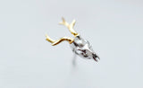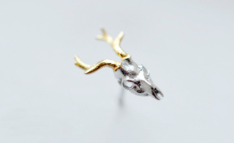 🦌 This handcrafted Silver Deer Skull Golden Antlers Earring is absolutely stunning. Handcrafted with bright golden tone antlers and hand polished to medium sheen, the impeccable craftsmanship and best in class materials used in creating this extraordinary earring make it true a stunner.