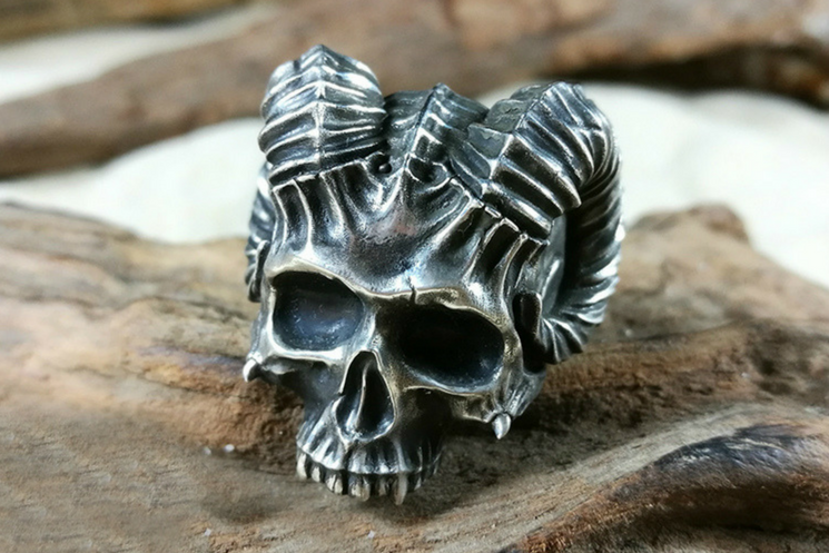 ☠ The evil dark force of the underworld brought to life with this handcrafted horned Satan skull silver ring, completed with savage half-jaw & monster horn details, this is the ultimate devilish ring. With the dark power on your finger, you can conquer whatever your heart desires and make the world obey to your hell-born force.