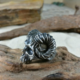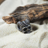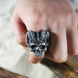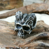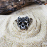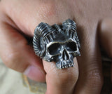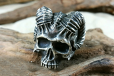 ☠☠☠ Horned Satan Skull Silver Ring ☠☠☠