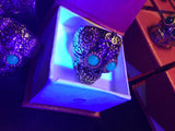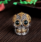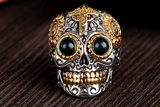 ☠☠☠ Mexican Sugar Skull Biker Ring with Blue Amber Eyes ☠☠☠