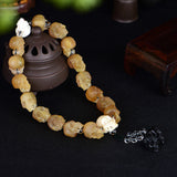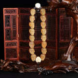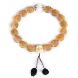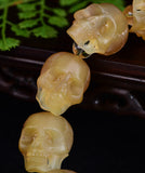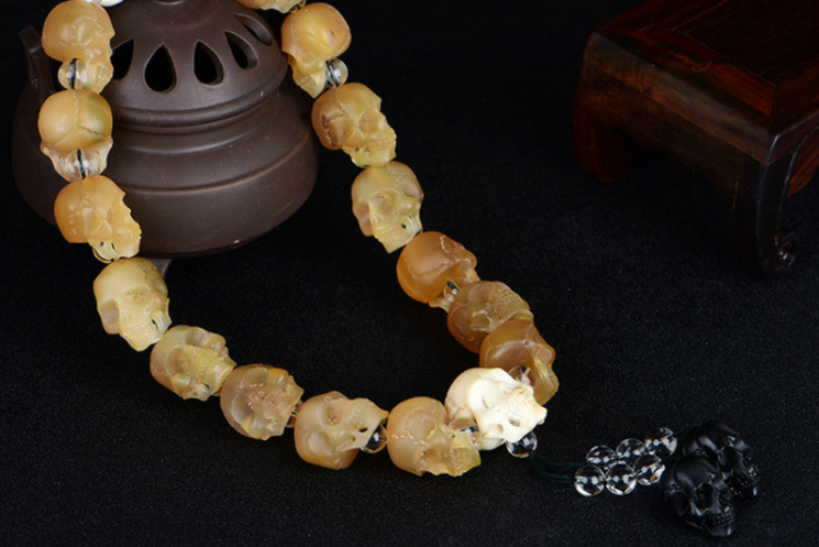 ☠ 18 pieces of handcrafted Tibetan Goat Horn sculpture skulls bracelet, the ultimate badass accessory for the kick-ass devils. Made of Tibetan Plateau mountain goat horns from an ethically farmed source, polished to seductive golden amber and dark wood tone, hand carved to the finest realistic details, this bracelet is truly devilish to the core. Adorned with 2 white deer antler skulls and 2 black buffalo horn skulls as contrasting centerpiece, this necklace radiates mysterious aura.