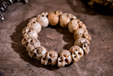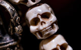 ☠ A statement skull bracelet made of 13 pieces of handcrafted sculpture skulls in decayed finish, this is the ultimate badass jewelry for the bone lovers. Made of naturally-shed deer antlers from an ethically farmed source, hand polished to realistically resemble the skull texture, hand carved to the finest devilish details- the cracks, the teeth, the marks.The devil truly lies in the details, it's truly devilish to the bone.