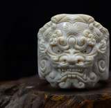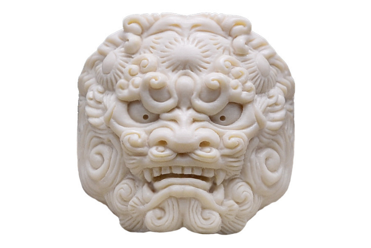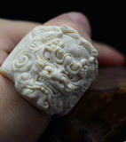 ☠☠☠ Mammoth Ivory Fossil Foo Dog Ring ☠☠☠