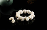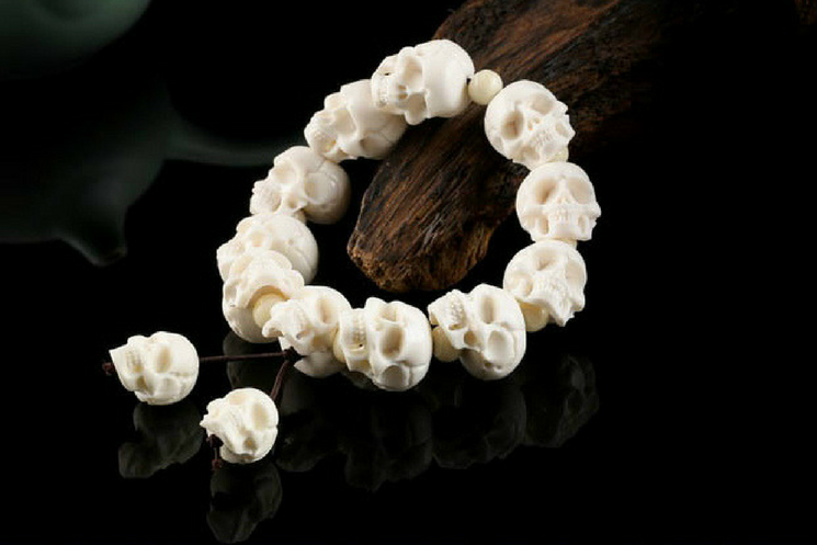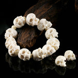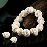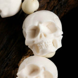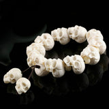 ☠ A statement skull bracelet made of 13 pieces of handcrafted bone sculpture white skulls, this is the ultimate badass jewelry for the kick-ass devils. Made of naturally-shed deer antlers from an ethically farmed source, hand polished to realistically resemble the skull texture, hand carved to the finest devilish details- the cracks, the teeth, the marks, it's truly devilish to the bone.