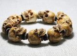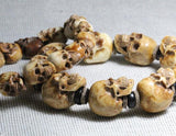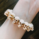☠ A statement skull bracelet made of handcrafted miniature sculpture rustic deer antler skulls, this is the ultimate badass bracelet for the daredevils. Made of naturally-shed deer antlers from an ethically farmed source, hand polished to realistically resemble the skull texture, hand carved to the finest devilish details- the cracks, the teeth and the marks all make this bracelet a hell of skull realness. The devil truly lies in the details, it's truly devilish to the bone.