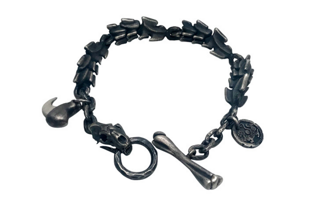 ☠ This handcrafted Saber-Toothed Tiger skull skeleton bracelet is a pure savage beast. Completed with beasty claw and skeleton chain details, this bracelet truly is an alpha predator. Wear the spirit and go crush it !