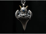 ☠ Handcrafted by master craftsman with 925 sterling silver and 18K gold, embellished with the crown jewel made of natural untreated blue sapphire gemstone, this Viking Pendant is your effortless statement piece.The more you wear it, the more it becomes a part of your identity.