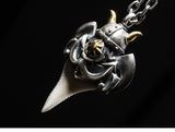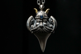 ☠ A striking Bearded Viking & Shark Tooth made for the fearless warriors, a lot of intricate details are packed into this awesome Pendant. The majestic facial expression, the 18K gold horns and gold sailor wind rose details and the razor sharp real shark tooth all ooze masculinity and warrior spirit.
