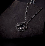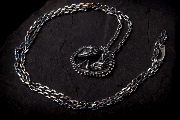 ☠ Like a fossil found on a wild land, this Crocodile Skeleton Necklace has the unmistakable time-tested aged aesthetics, this unhatched prehistoric beast has been kept intact for its next master to awaken his force.