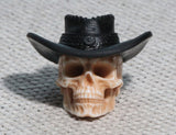 Embrace rugged elegance with our Deer Antler & Black Buffalo Horn Cowboy Skull Bead, a distinctive blend of wild frontier spirit and natural beauty. The skull is handcrafted from authentic deer antler, and the cowboy hat is crafted from natural black buffalo horn, this unique blend symbolizes bravery and the untamed West. The natural variations in the antler’s texture ensure each piece is one-of-a-kind, adding a touch of rustic authenticity to your look. Ideal for adventurers, outdoor enthusiasts, and fans of Western lore, it's a tribute to the spirit of freedom and individuality.