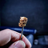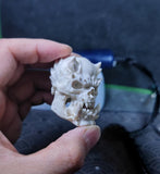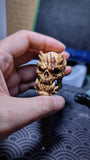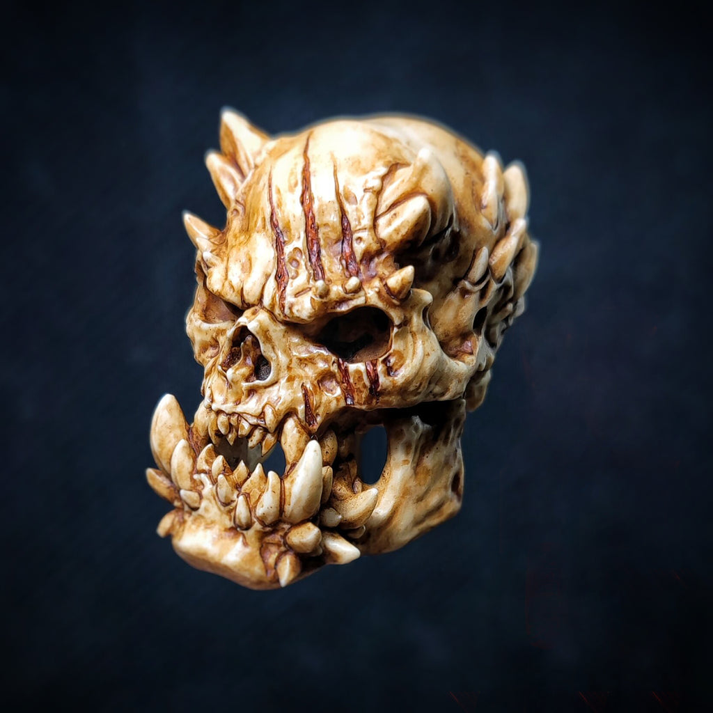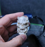 ☠ Intricately handcrafted deer antler sculpture skull bead with hellish details, monster jaws and horns armor this fierce dark lord. Made of naturally-shed deer antlers from ethically farmed source from New Zealand, hand tuned to the finest realistic details. This bead is made of matured deer antler of highest density for its hellish aura and durability.