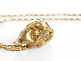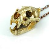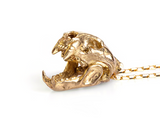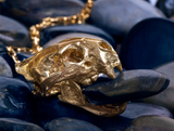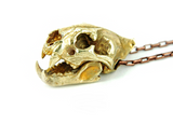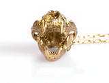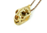 ☠ This Handcrafted Leopard Skull Brass Pendant screams beast mode on. Completed with hellish moveable jaws and exaggerated pointed upper teeth, the shinny glossy golden overlay finish makes this pendant a true eye-catcher.