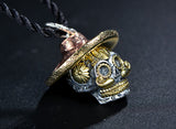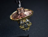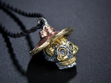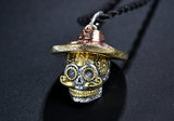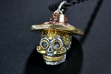 - Mexican Biker Sugar Skull Pendant features hand etched details with bright two-tone brass overlay
