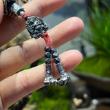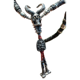 Unleash the dark and daring side with our Horned Satan Skull Mala Chain Necklace, an embodiment of bold style and mystical symbolism. This striking necklace features meticulously crafted skull beads, adorned with an intricate horned Satan Skull Guru Bead symbolizing rebellion and transformation. Whether you're drawn to gothic fashion or seeking a unique statement piece, this necklace stands out with its detailed craftsmanship and edgy aesthetic.
