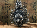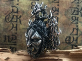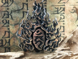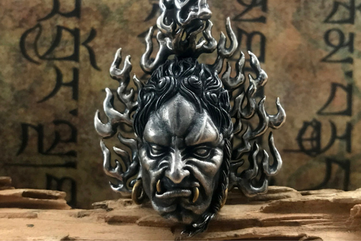 This freaking awesome handcrafted Immovable Protector Acalanatha silver pendant in rustic smoked finish is the perfect match for your badass self. Famous for his intense facial expression and demeanor, Acalanatha is a king of wisdom in Buddhism, Acala is said to be a powerful deity who protects all by burning away all impediments and defilement, thus aiding them towards enlightenment.