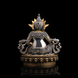 This finely crafted statue showcases intricate detailing, from Jambhala's serene expression to the symbolic treasures he holds, representing generosity and affluence.