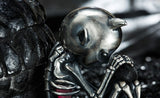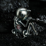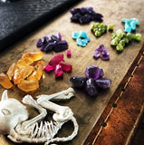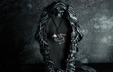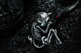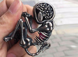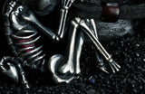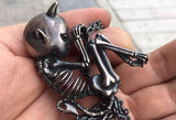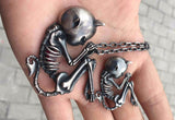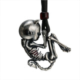 😈 This baby devil may be dormant but your can still feel its dark magic brewing for the hellish awakening. Every detail is handcrafted to give this dark beauty a stark contrast between life and death. The gemstone heart embellishment and brain carving give the little devil heart and soul, the skeleton and throat-cutting tail complete the picture of this wicked wearable art.