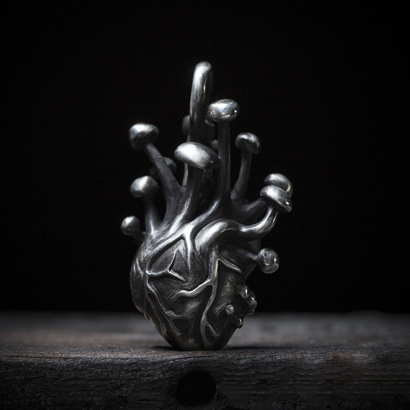 ☠☠☠ Magic Mushroom Heart Pendant ☠☠☠