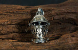 ☠ The fierce dark force of the underworld brought to life with this handcrafted Masked Ghost Knight silver pendant, with intricately crafted knight mask helmet, oversized bulging cheek bones and fearsome facial expressions, this is the ultimate devilish pendant. With the dark power on your side, you can conquer whatever your heart desires and make the world bow to your hell-born unbeatable force.
