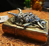 ☠ Blood-thirsty Japanese Oni Demon and his gruesome spirit captured in this hellish Zippo case, handcrafted with devilish horns and vampire sucker teeth, this beast demands attention wherever it strikes.🔥🔥🔥