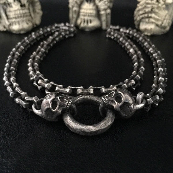 ☠ When your favorite pendant is bold AF, you can't hang it on a basic-bitch necklace. This 6.5 mm thick skull chain necklace will match up your pendant to the MAX. Featuring twin skull and a ring design, this chunky necklace is the perfect match for your statement pieces.💥