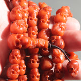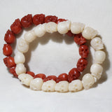 ☠ Unleash your inner warrior with this Yak Bone Skull Bracelet, a bold statement piece infused with tribal aesthetics and ancient symbolism. Crafted from genuine yak bone, this bracelet features intricately carved skulls, hand-dyed with a deep blood-red finish using natural dyes—symbolizing strength, protection, and resilience.