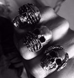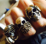 ☠ These handcrafted See No Evil Hear No Evil Speak No Evil rings are truly badass with intricately crafted miniature skull details. These rings are hand tuned to medium sheen with its lightly decayed finish for the bygone-age aesthetics.