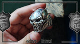 ☠ Made to Order Handcrafted Silver Predator Skull Ring created just for you. Every piece is handcrafted & precisely made just to satisfy your badass taste. The time-tested antique aesthetics and impeccable quality are ageless & best-in-class. It's like a piece of jewelry lost & found straight from the Predator Movie Scene, it truly belongs to kick-ass monsters.