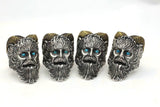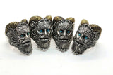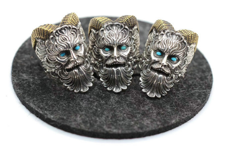 ☠ The Greek God of seduction is brought to life with this intricately handcrafted Pan Faun ring. Completed with savage horns, intense facial expressions and embellished with mesmerizing blue turquoise eyes, this ring makes a perfect fit for you to express your god-given confidence and irresistible charm.