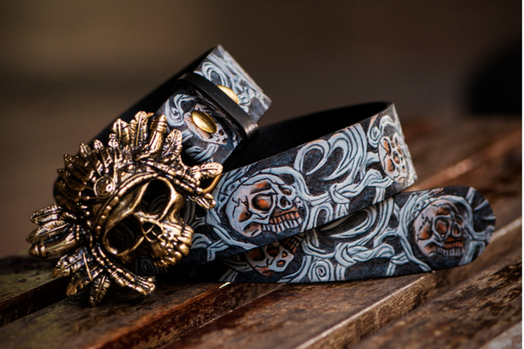 • Hand Painted Sugar Skull Leather Belt - Holy Buyble