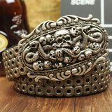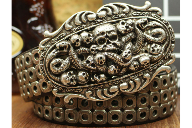 ☠ Handcrafted with light-weight tin alloy durable metal and genuine cowhide leather, this Skull Leather Belt is your true statement piece for your kick-ass wardrobe. 💪